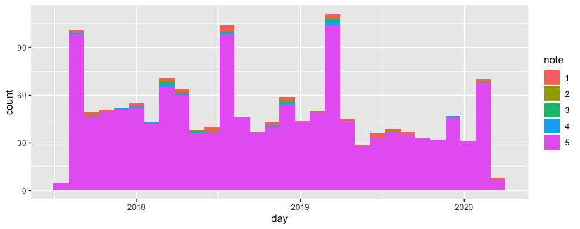 the data is now ready, export your data or make a small graph to display it using ggplot package