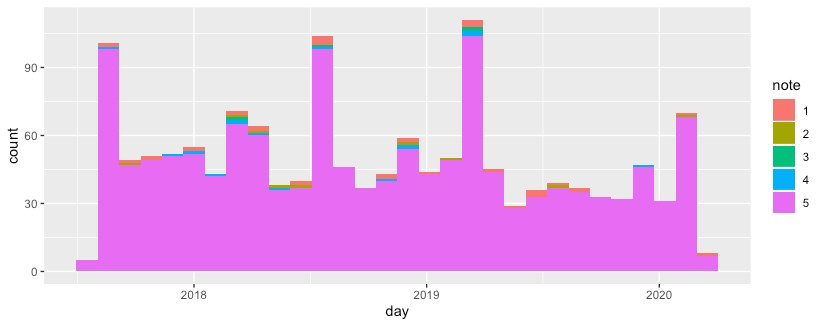 ggplot(all_reviews, aes(x=day, fill=note))+
